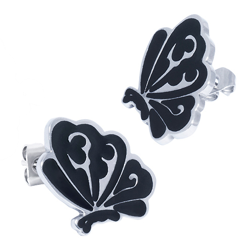 STAINLESS STEEL EARRINGIN BUTTERFLY SHAPE (BLACK)