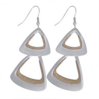 STAINLESS STEEL DANGLE EARRINGWITH 2 TRIANGLESIN BROWN / BLACK / GOLD COLOR WITH SAND BLASTED PAPER