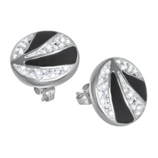 STAINLESS STEEL STUD EARRING WITH CZ IN CIRCLE IN S/S COLOR WITH BLACK