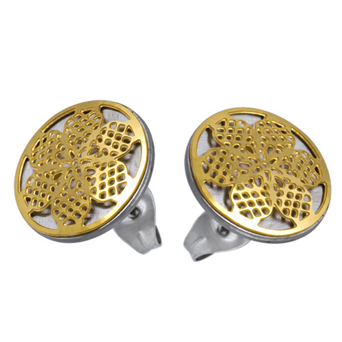 STAINLESS STEEL STUD EARRING IN CIRCLE SHAPE IN IPG 2 TONE