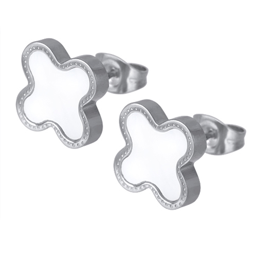 STAINLESS STEEL LEAF EARRING WITH SHELLIN S/S COLOR (LIKE SE778)