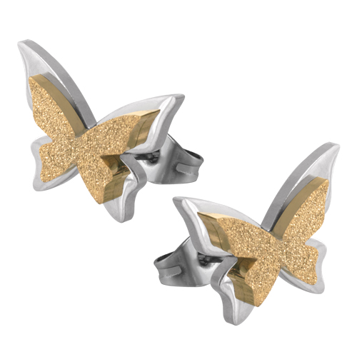 STAINLESS STEEL EARRING IN BUTTERFLY SHAPE WITH SANDBLAST IN IPG TWO TONES
