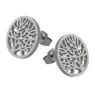 STAINLESS STEEL EARRINGIN CIRCLE SHAPE IN CORAL IMAGE WITH SANDBLAST ALL IN S/S COLOR