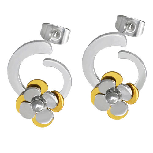 STAINLESS STEEL EARRING WITH MOVABLE FLOWER IN IPG TWO TONE