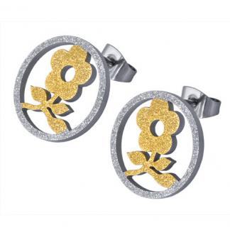 STAINLESS STEEL EARRING WITH FLOWER WITH SANDBLAST IN IPG TWO TONE