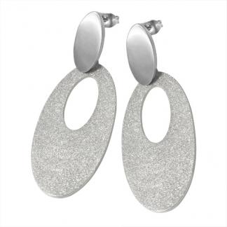 STAINLESS STEEL DROP EARRING WITH 2 OVALS WITH SANDBLAST ALL IN STEEL COLOR
