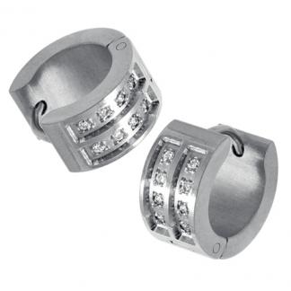 STAINLESS STEEL HUGGIE EARRING WITH 2 STRIP OF CZ ALL IN STEEL COLOR
