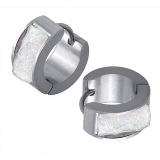 STAINLESS STEEL HUGGIE EARRING WITH WHITE STONE (SHINY COLORS)