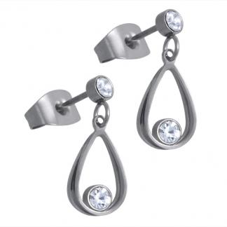 STAINLESS STEEL EARRING WITH DROP SHAPE PENDANT WITH 1 CZ ALL IN STEEL COLOR