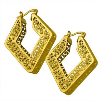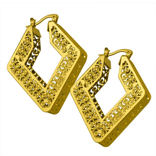 STAINLESS STEEL 3D EARRING IN HOOP STYLE IN RHOMBUS SHAPE WITH CUT OUT ALL IN IPG COLOR