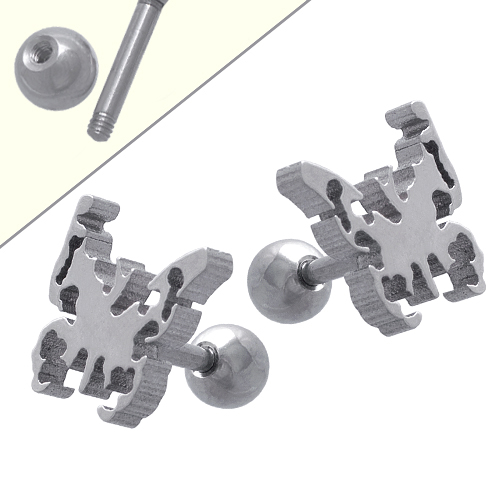 STAINLESS STEEL (EARRING) OPENER FOR KIDS WITH SCREW WITH BUTTERFLY ALL IN STEEL COLOR