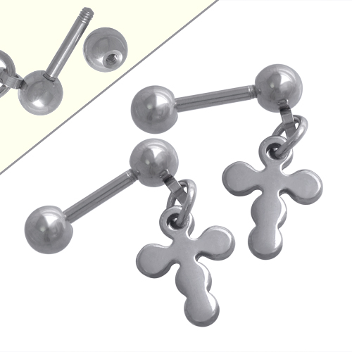 STAINLESS STEEL (EARRING)OPENER FOR KIDS WITH SCREW WITH CROSS ALL IN STEEL COLOR