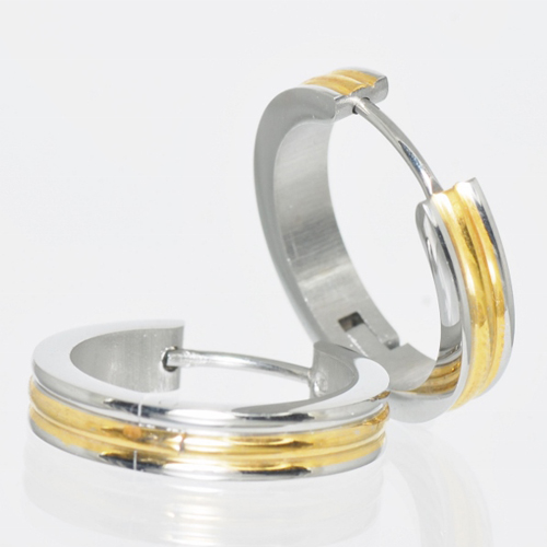 STAINLESS STEEL HUGGIE EARRINGS IN IPG TWO TONE