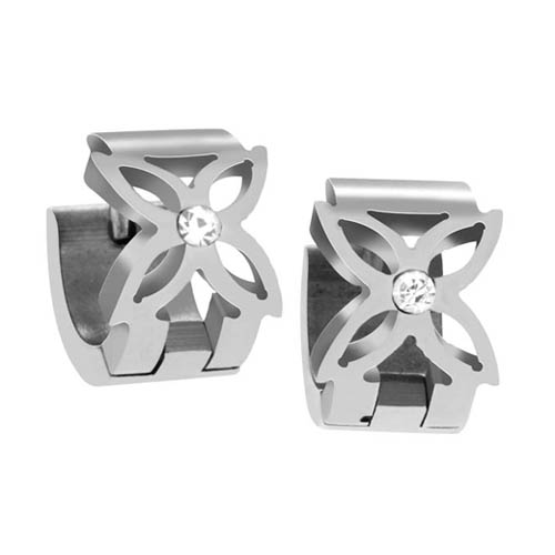 STAINLESS STEEL HUGGIE EARRINGS ALL IN S/S COLOR WITH FLOWER SHAPE WITH CZ