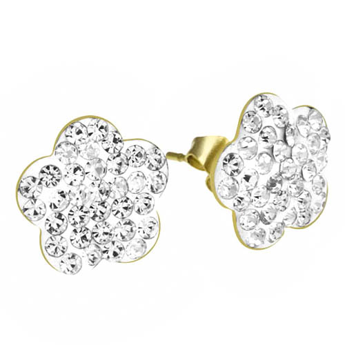 STAINLESS STEEL EARRINGS IN IPG COLOR IN FLOWER SHAPE WITH CZ