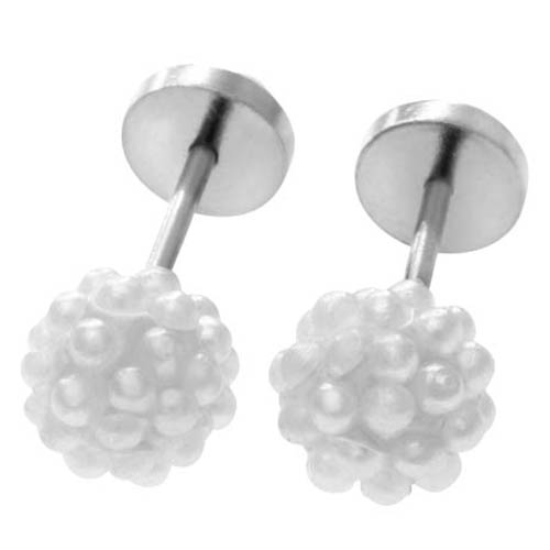 STAINLESS STEEL EARRINGS WITH PEARL IN SPHERE SHAPE WITH BABY COVER IN S/S COLOR