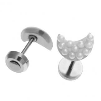 STAINLESS STEEL STUD EARRING MOON SHAPE FILLED WITH MICRO PEARL S/S COLOR