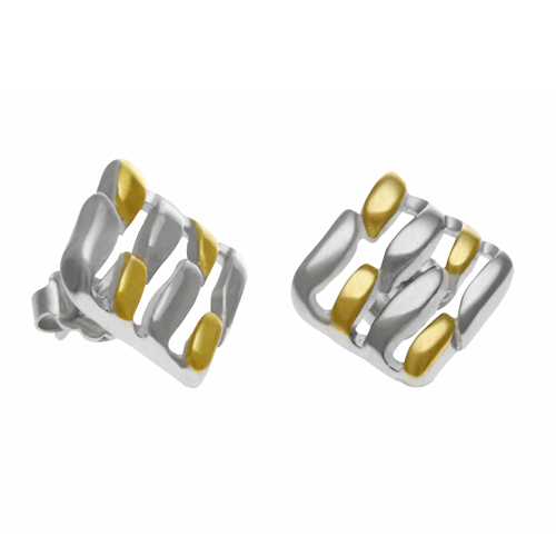 STAINLESS STEEL EARRINGS IN RHOMBUSSHAPE WITH A WAVY NAIL PATTERN IN TWO TONE S/S & IPG COLOR