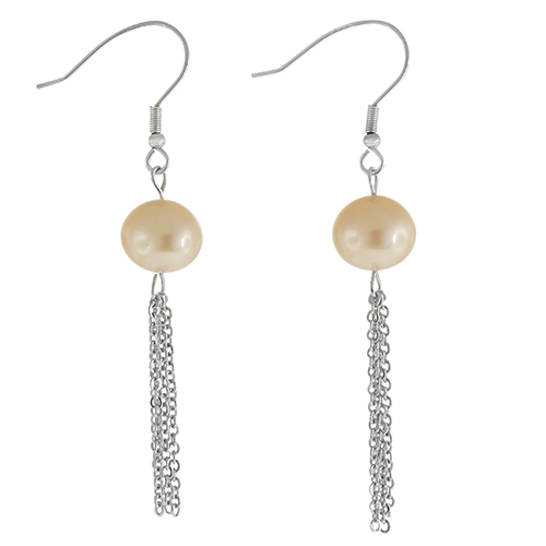 STAINLESS STEEL EARRING WITH RIVER PEARL IN PINK COLOR
