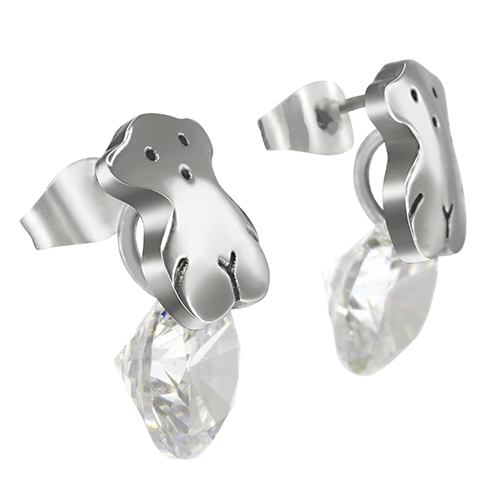 STAINLESS STEEL EARRING IN BEAR SHAPE WITH ONE BIG CZ