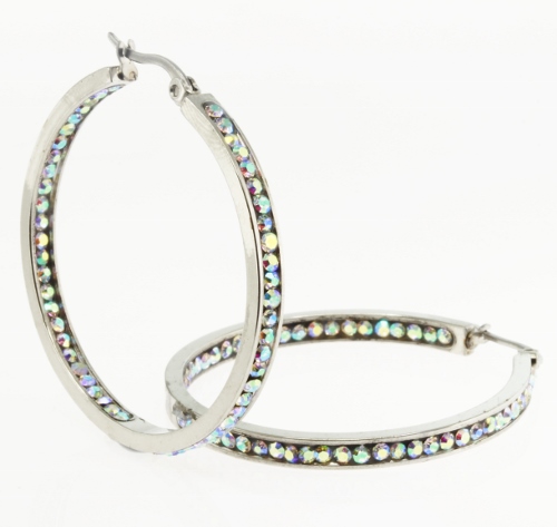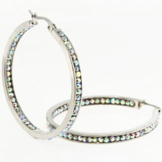 STAINLESS STEEL EARRING IN ROUND SHAPE WITH CZ IN AB COLOR