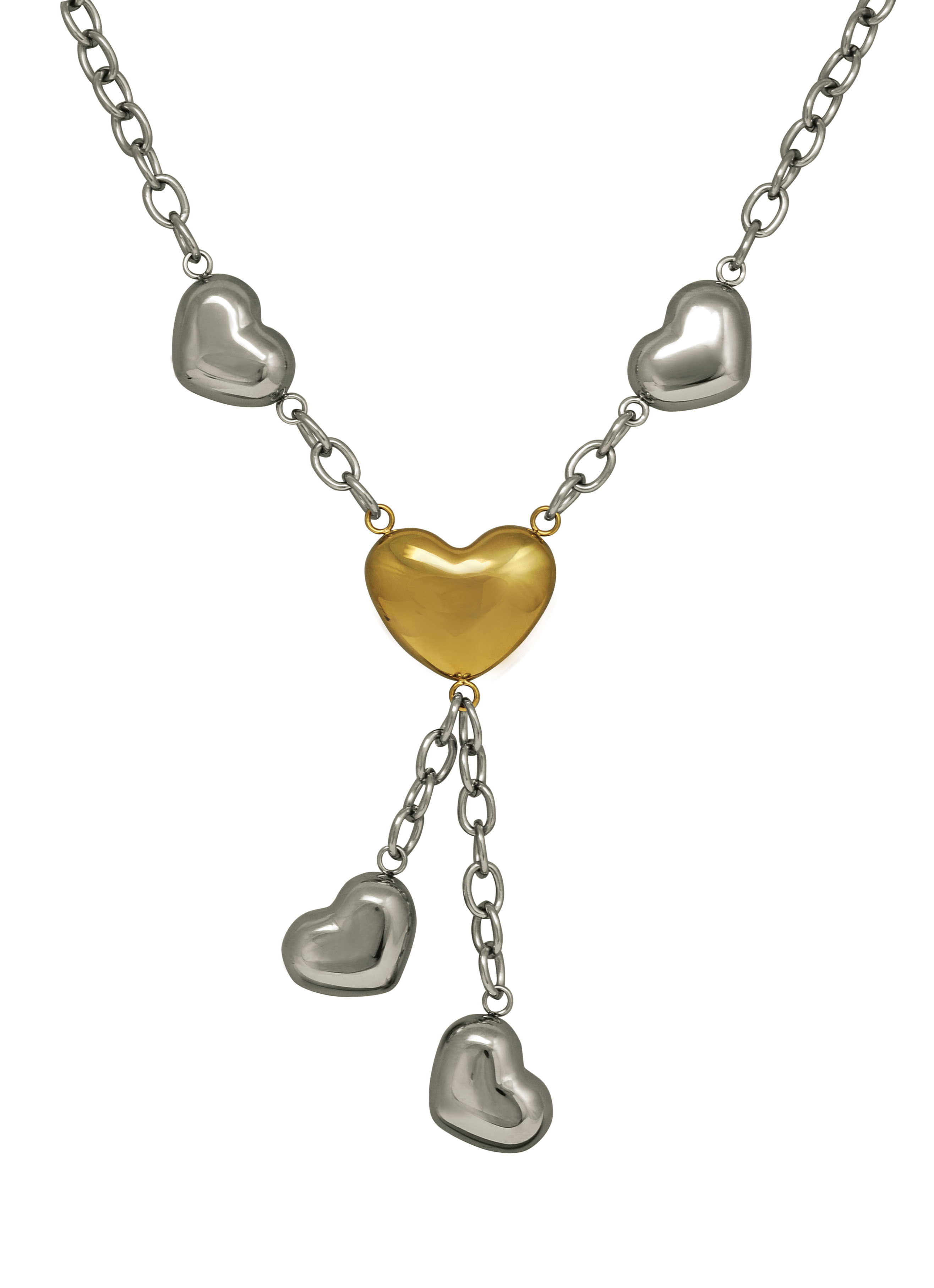 Stainless Steel Necklace IPG Big Heart & 4 small heart in S/S