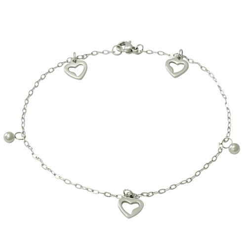Stainless Steel Necklace with Anklet in heart shape with 2 balls In steel color