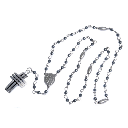 STAINLESS STEEL ROSARY WITH CROSS PENDANT (WITH HEMATITE BEADS)