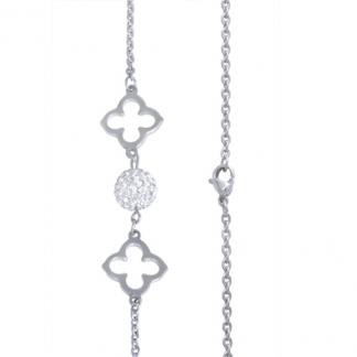 STAINLESS STEEL NECKLACE WITH 1 CZ BALL AND 2PCS OF LEAVES
