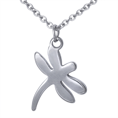 STAINLESS STEEL NECKLACE WITH DRAGONFLY PENDANT IN S/S COLOR