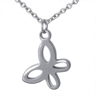 STAINLESS STEEL NECKLACE WITH BUTTERFLY PENDANT IN S/S COLOR