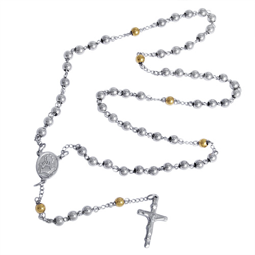 STAINLESS STEEL ROSARY WITH JESUS CROSS IN IPG 2 TONE