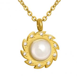 STAINLESS STEEL NECKLACE IPG WITH WHIRLPOOL PENDANT WITH SYNTHETIC PEARL & CZ
