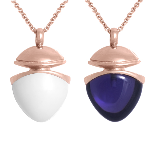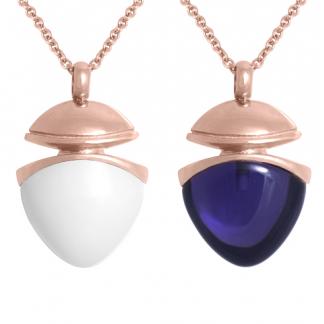 STAINLESS STEEL PENDANT NECKLACE ALL IN IP ROSE COLOR WITH PENDANT IN AMETHYST OR WHITE CERAMIC