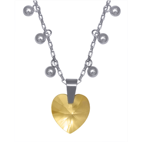 STAINLESS STEEL NECKLACE WITH BEAD CHARM & LIGHT YELLOW SWAROVSKI HEART PENDANT