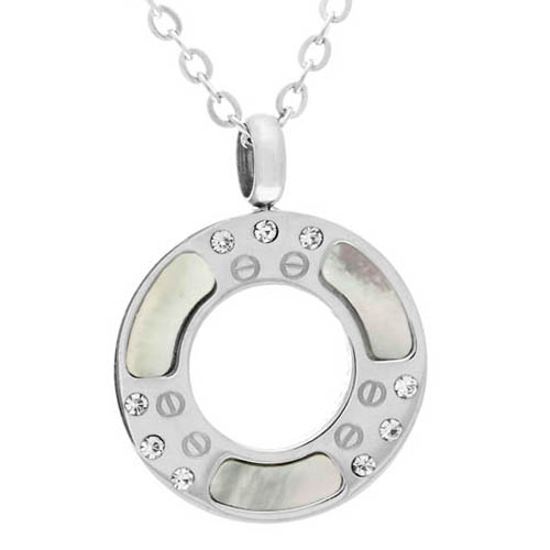 STAINLESS STEEL NECKLACE WITH CIRCLE PENDANT WITH CZ ALL IN S/S COLOR
