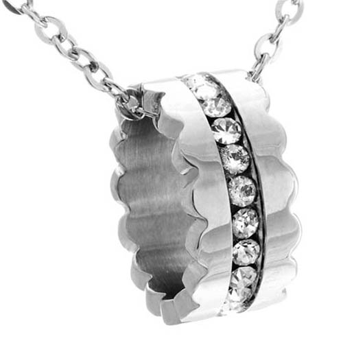 STAINLESS STEEL NECKLACE ALL IN STAINLESS STEEL COLOR WITH RING SHAPE PENDANT WITH CZ (Set with SE1431)