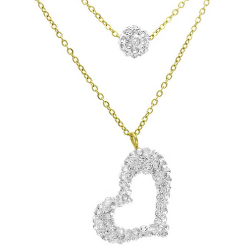 STAINLESS STEEL NECKLACE ALL IN IPG COLOR WITH WHITE HEART PENDANT WITH CZ WITH CZ SPHERE
