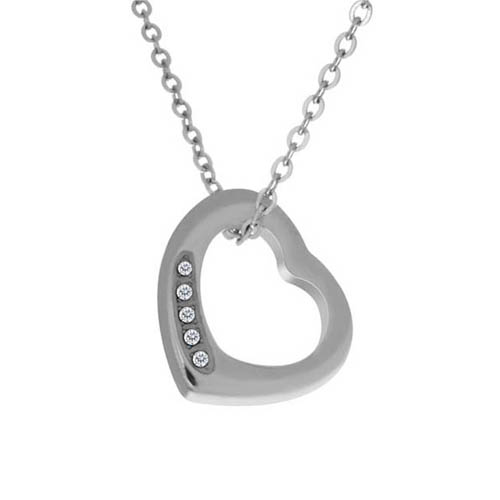 STAINLESS STEEL NECKLACE ALL IN S/S COLOR WITH HOLLOW HEART CHARMS WITH 5 CZ