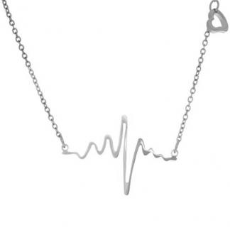 STAINLESS STEEL NECKLACE ALL IN S/S COLOR WITH HEART BEAT CHARMS WITH SMALL HOLLOW HEART |