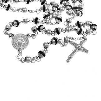 STAINLESS STEEL NECKLACE ROSARY WITH A CROSS PENDAN AND OVAL MEDAL WITH BEADS ALL IN S/S