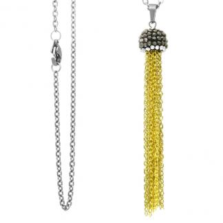 STAINLESS STEEL NECKLACE LIKE JELLY FISH SHAPE WITH BLACK & WHITE CZ AND A CLIP IN S/S AND IPG 2 TONE