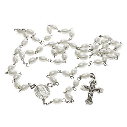 STAINLESS STEEL ROSARY NECKLACE IN ALL S/S WITH PEARLS
