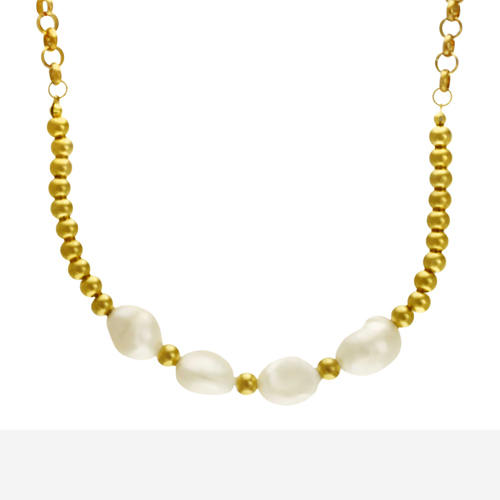 STAINLESS STEEL NECKLACE IN IPG COLOR WITH PEARLS PENDANT.