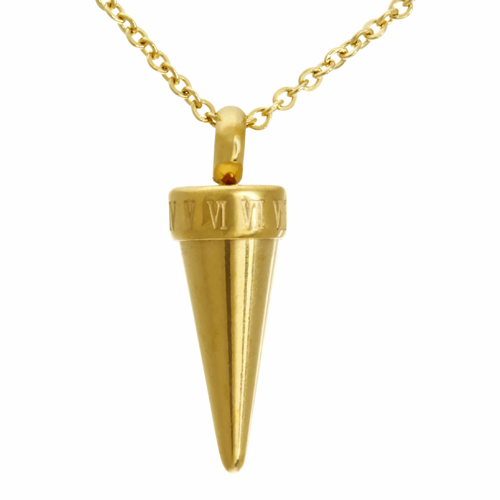 STAINLESS STEEL NECKLACE WITH IN TUSK PENDANT WITH ROMAN NUMBERS ALL IN IPG COLOR.