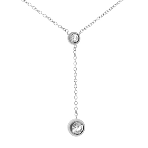 STAINLESS STEEL NECKLACE WITH 2 ROUND OF CRYSTAL PENDANT.