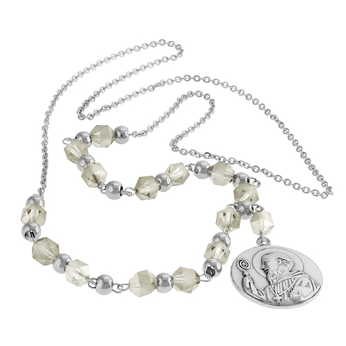 STAINLESS STEEL NECKLACE WITH GREY CRYSTAL AND SAN BENITO PENDANT