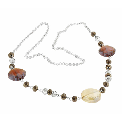 STAINLESS STEEL NECKLACE WITH CRYSTAL IN GUN COLOR AND GREY COLOR& 2 RED CRYSTAL& CHAMPANGE CRYSTAL