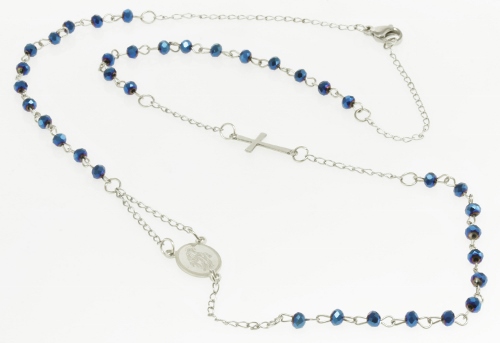 STAINLESS STEEL ROSARY CHAIN WITH BLUE CRYSTAL