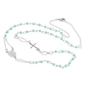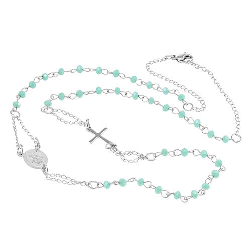 STAINLESS STEEL NECKLACE WITH TURQUOISE CRYSTAL BALL